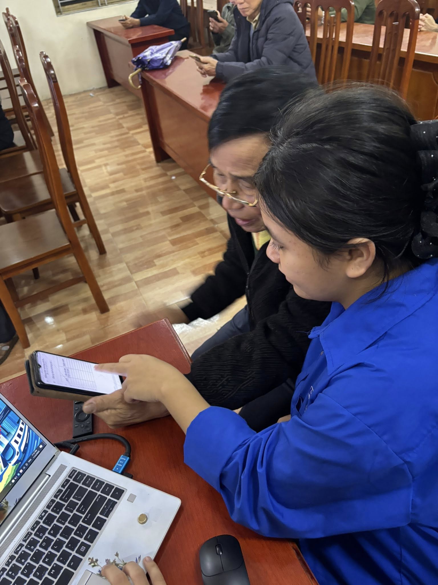 Tại buổi hướng dẫn, Đoàn viên, thanh niên xã đã trực tiếp hỗ trợ đảng viên từng bước thao tác trên thiết bị di động. Nội dung tập huấn tập trung vào việc ứng dụng công nghệ số trong công tác Đảng, góp phần nâng cao hiệu quả quản lý, lưu trữ và báo cáo số liệu, đồng thời giúp đảng viên tiếp cận và sử dụng thành thạo các tiện ích số trong sinh hoạt chi bộ.